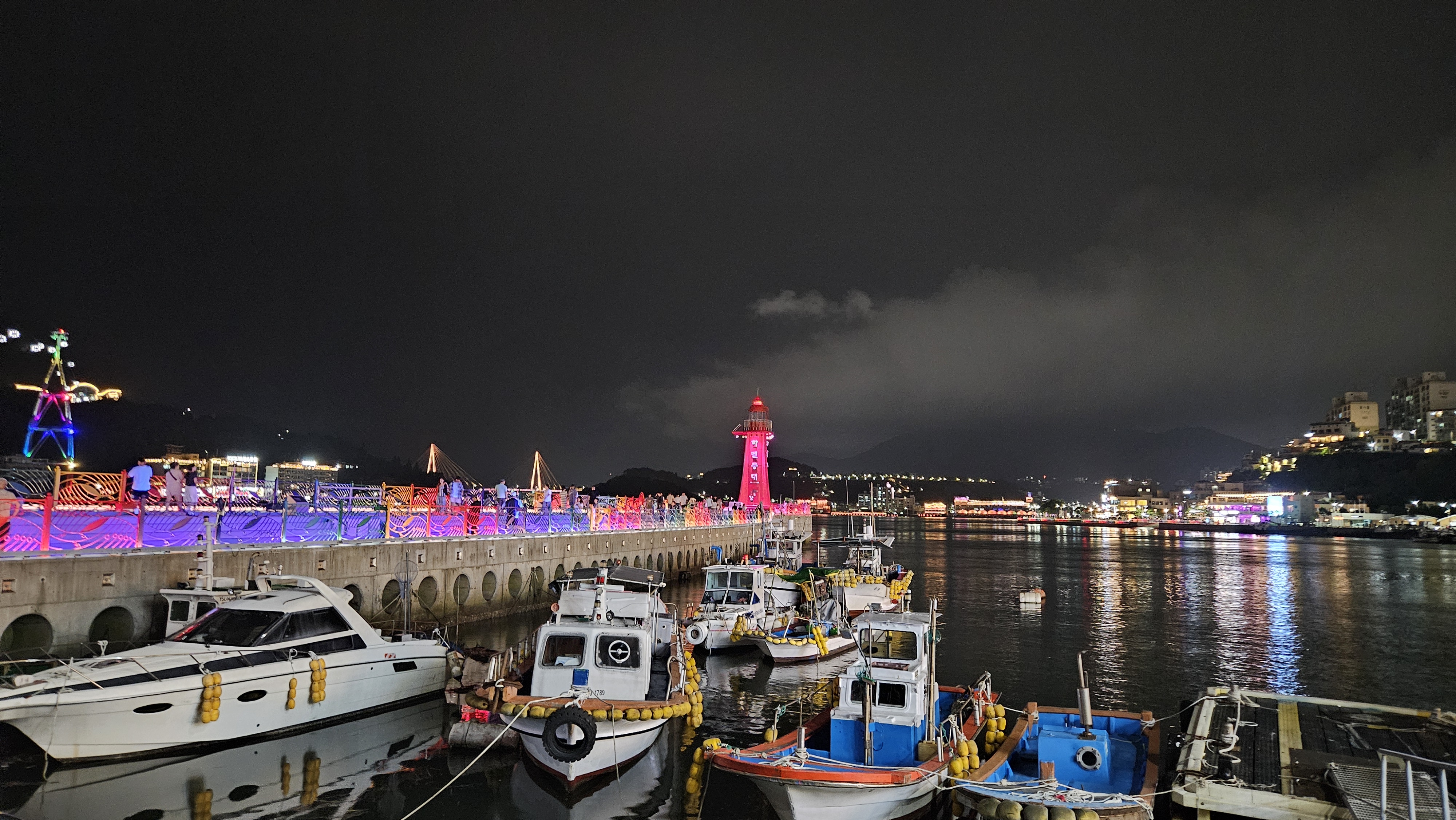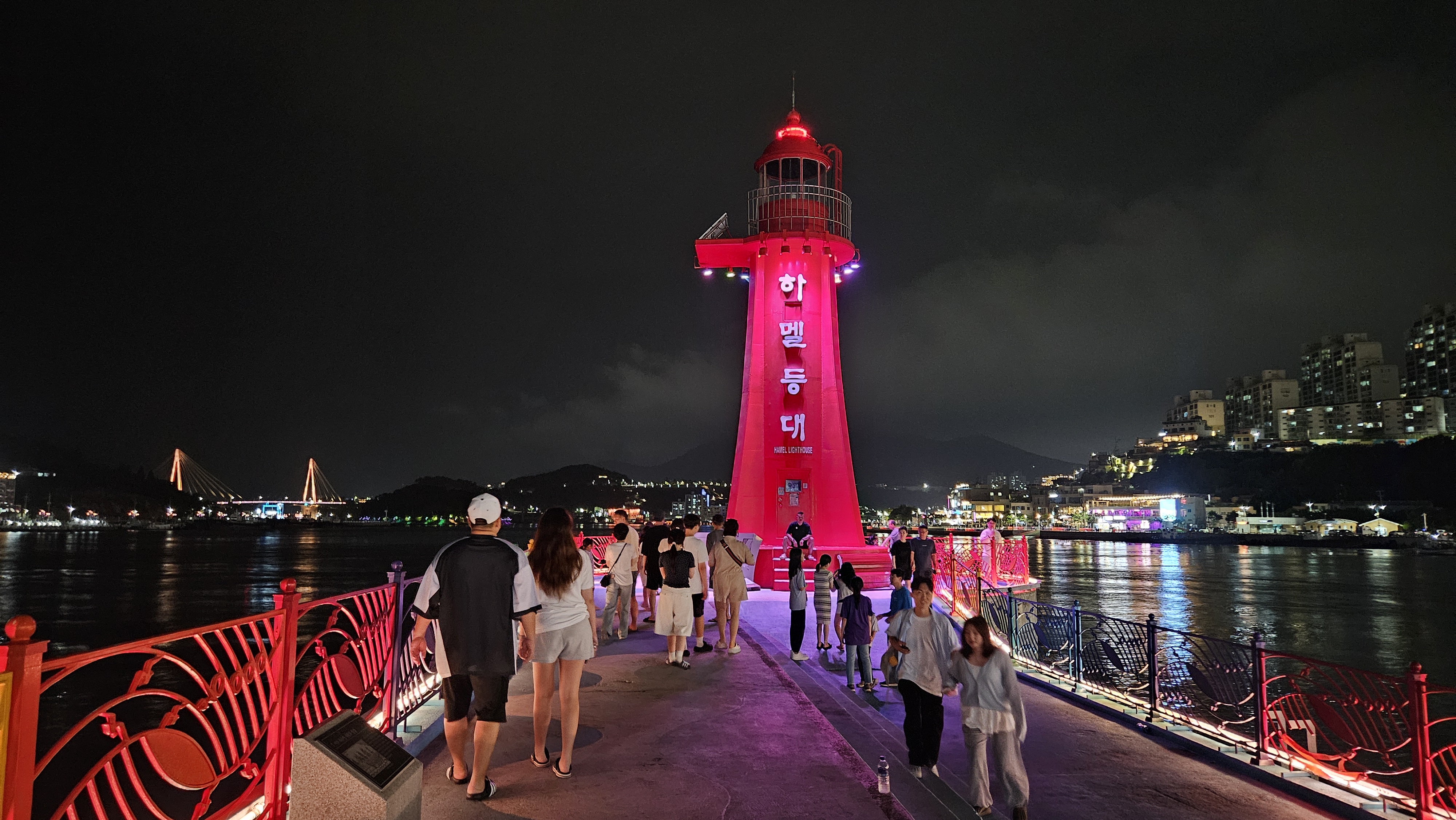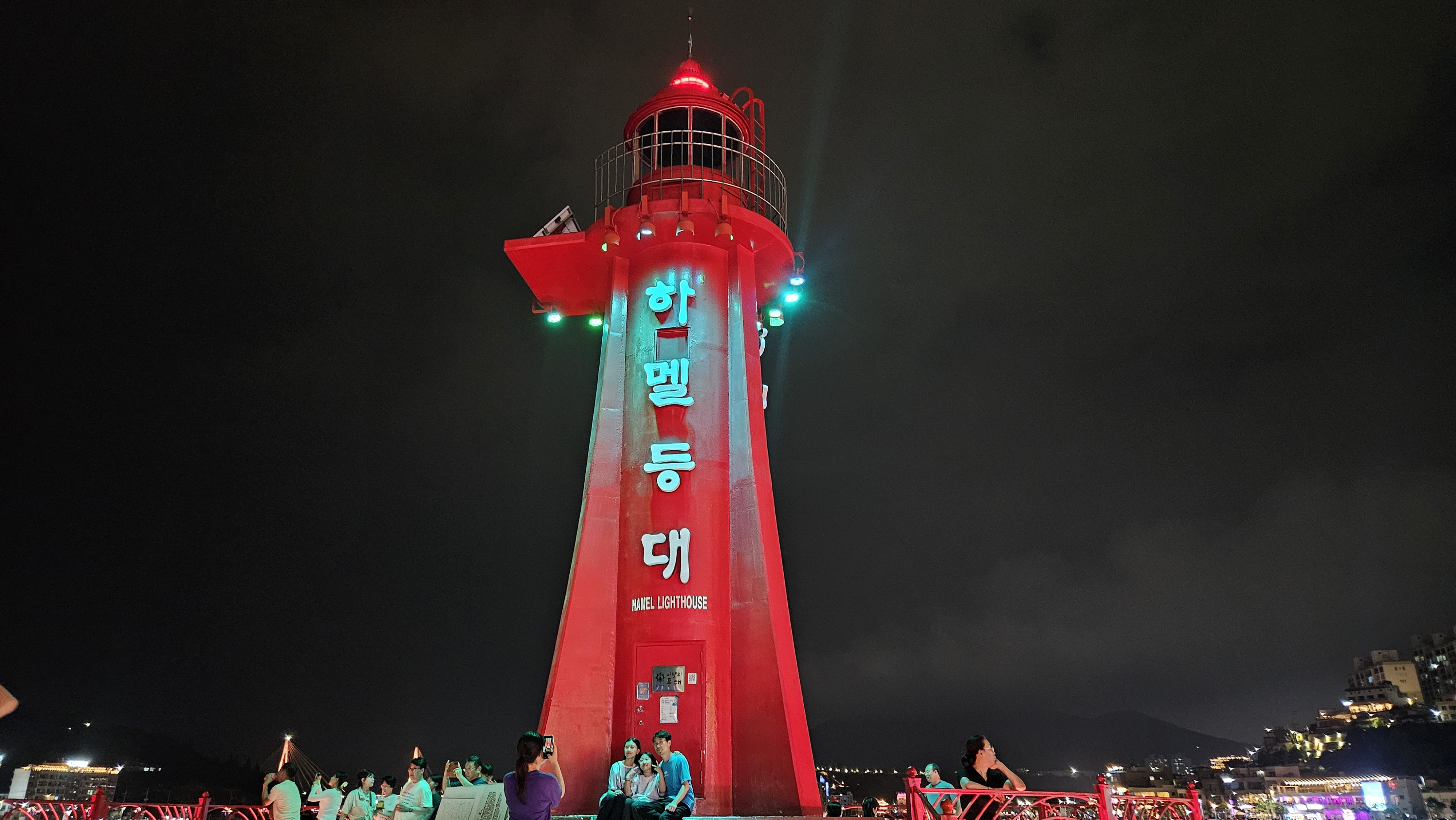 빨간 등대라 밤에 더욱 운치 있고 아름다운 것 같습니다.