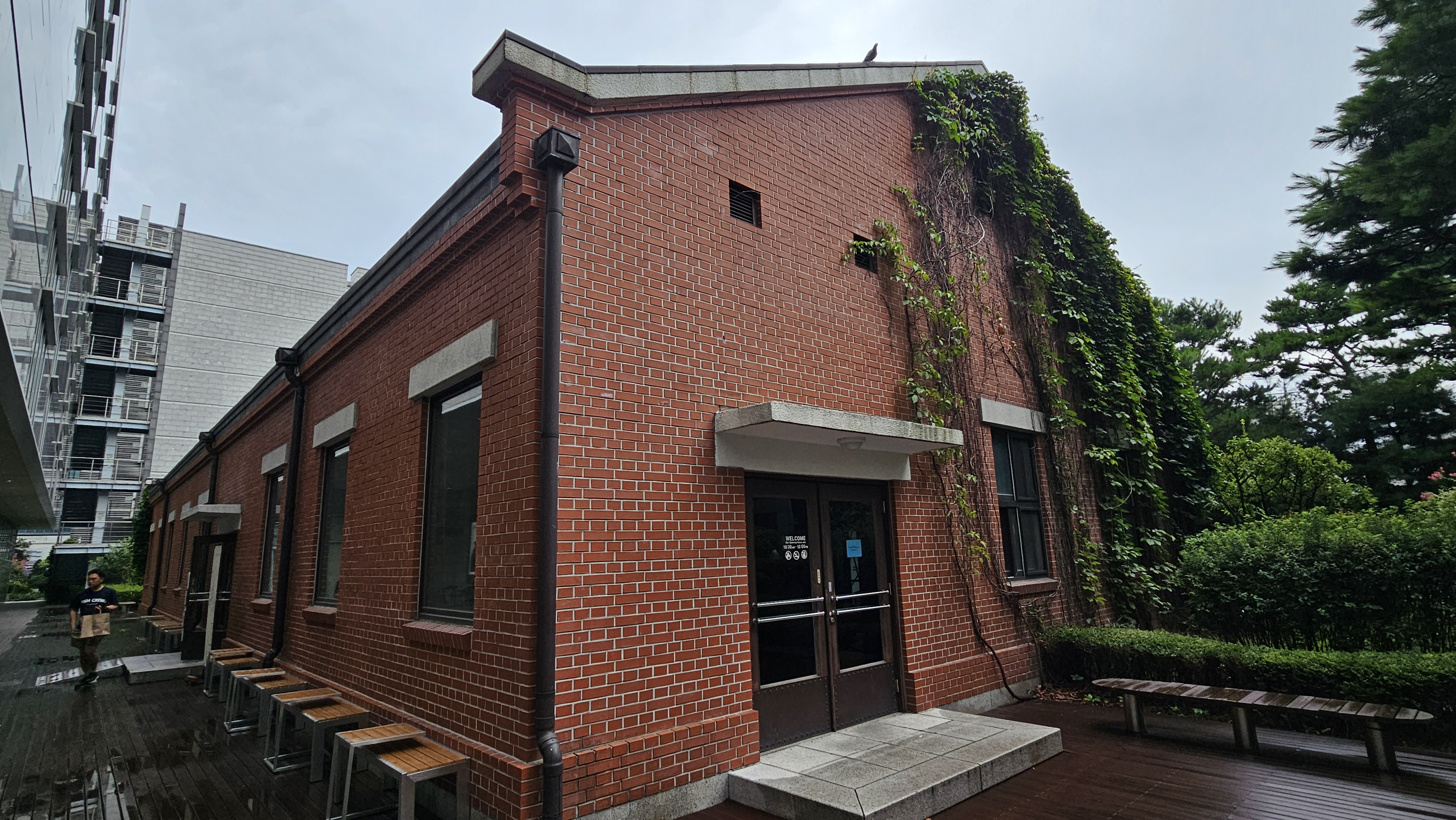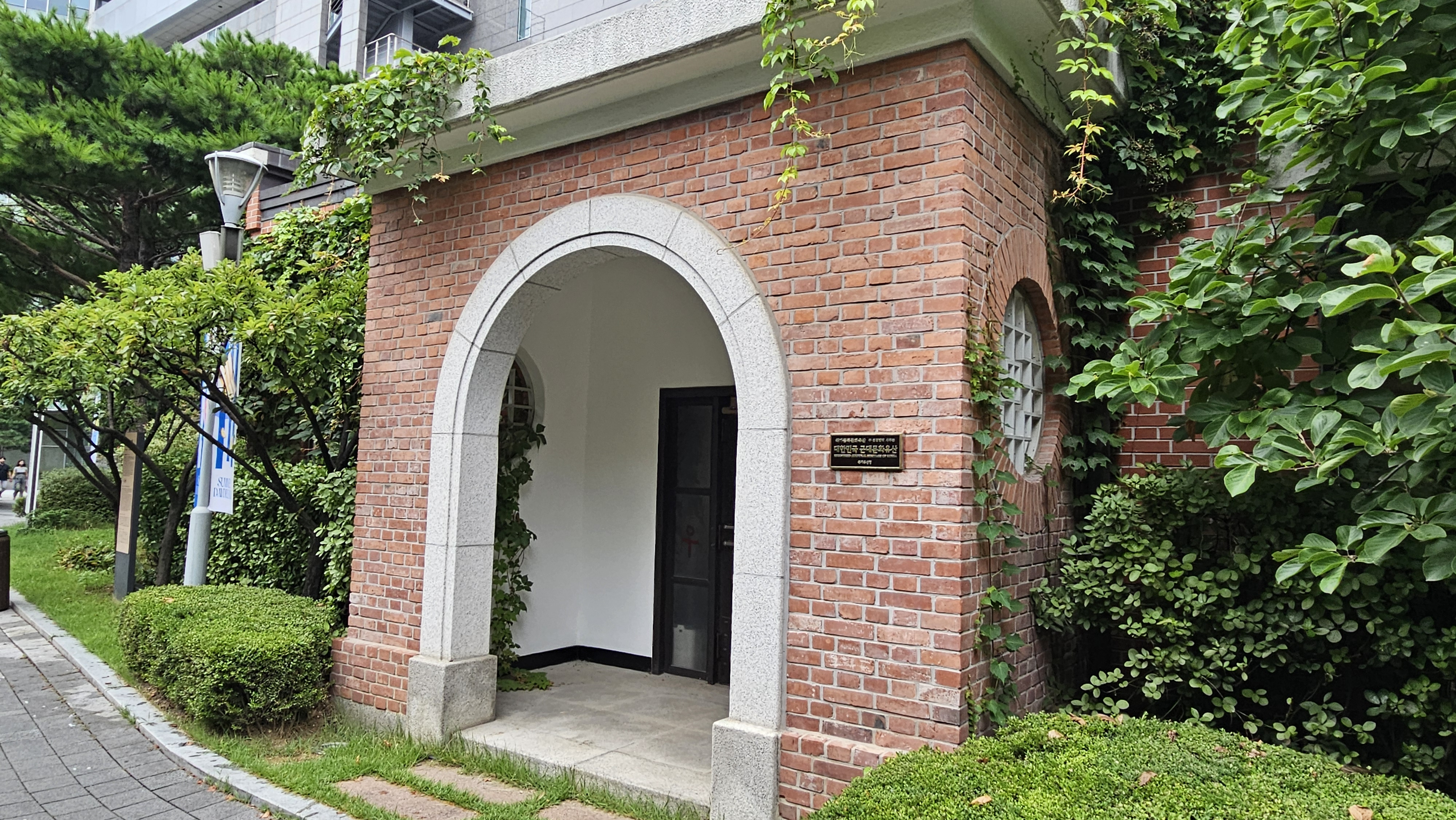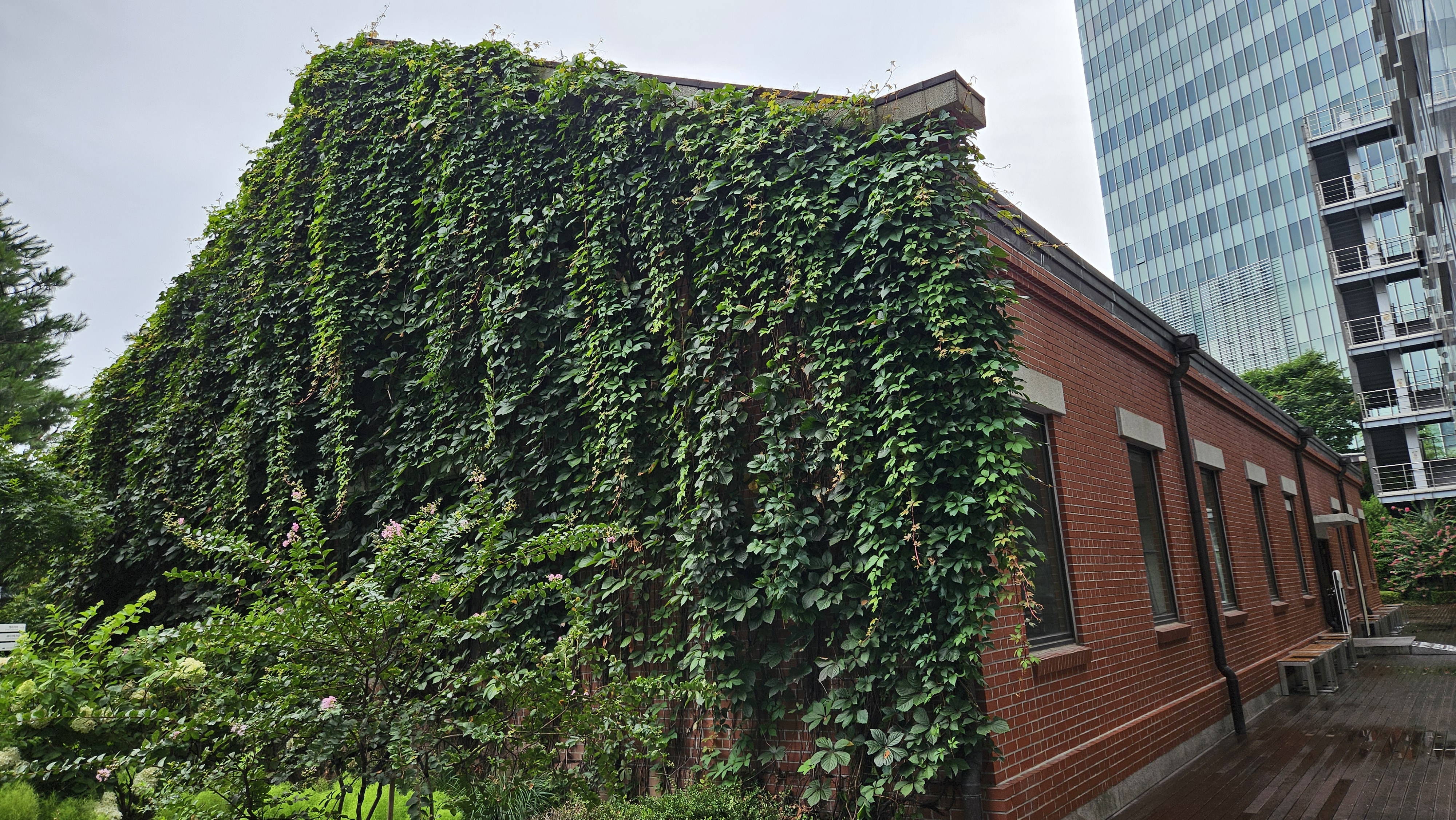등나무로 덮여 분위기가 느껴지는 근대 건축물입니다.