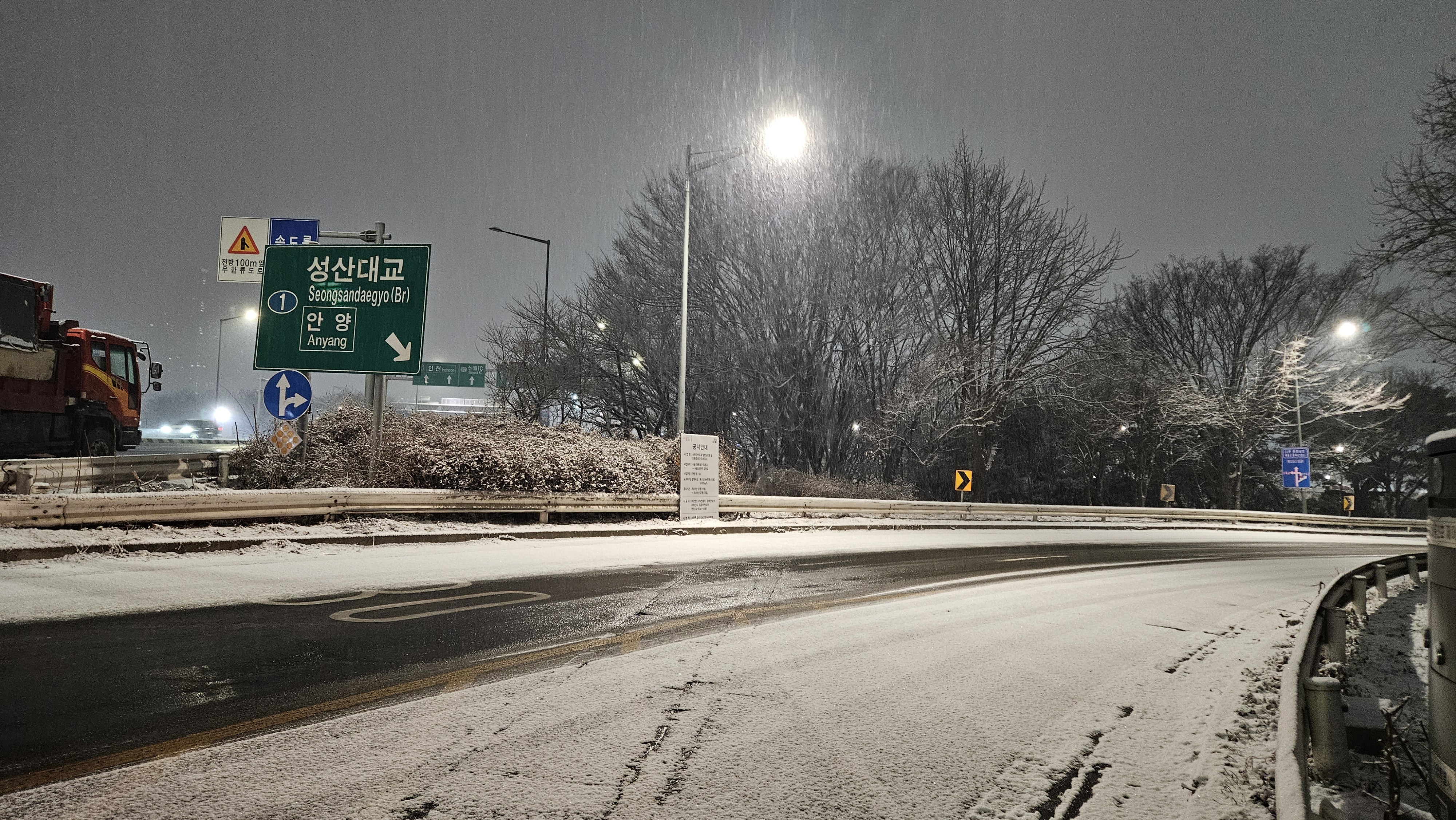 안양천 진입도로에 쌓인 눈