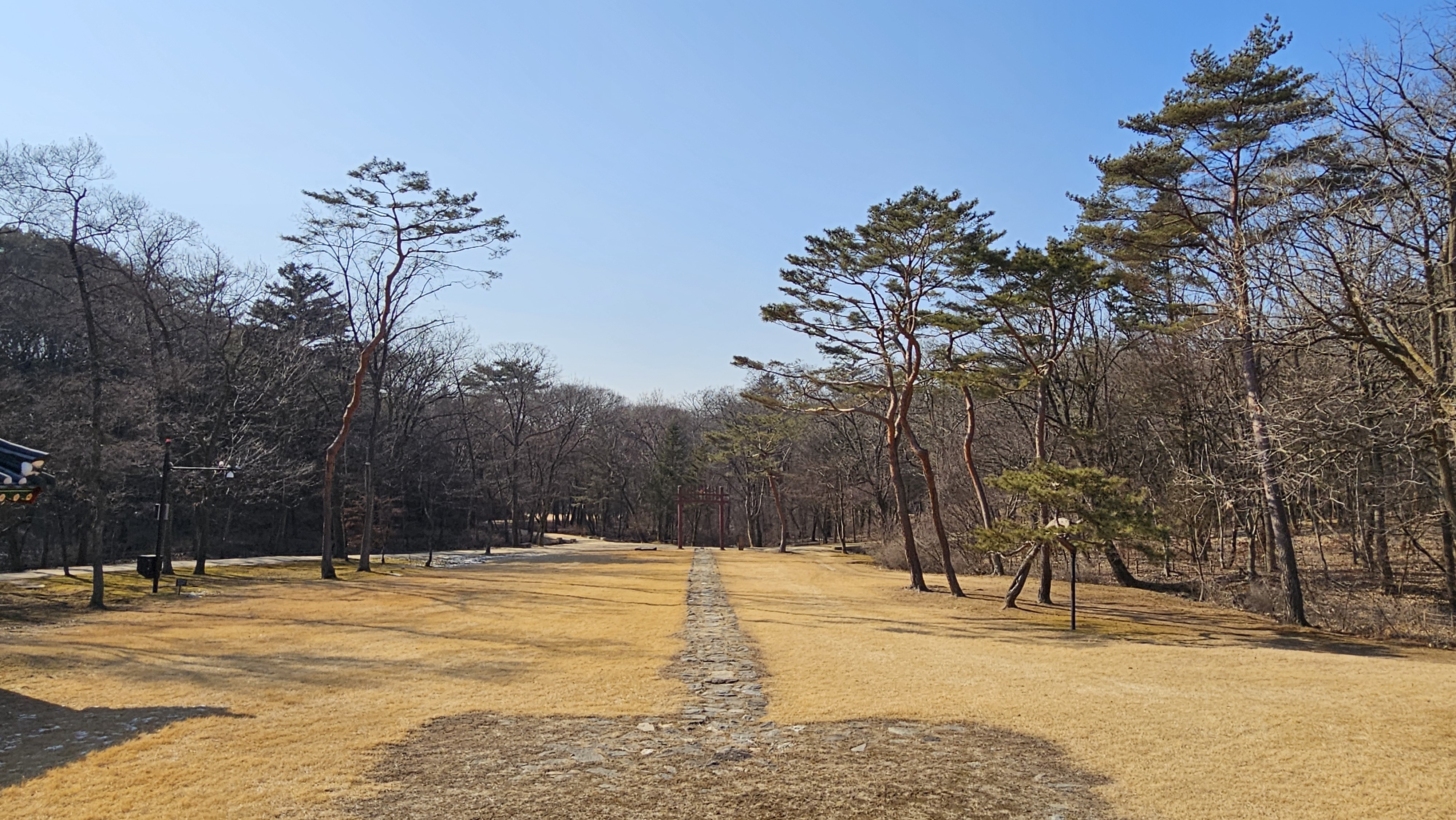 정자각에서 바라본 진입로(신도와 어도)와 홍살문