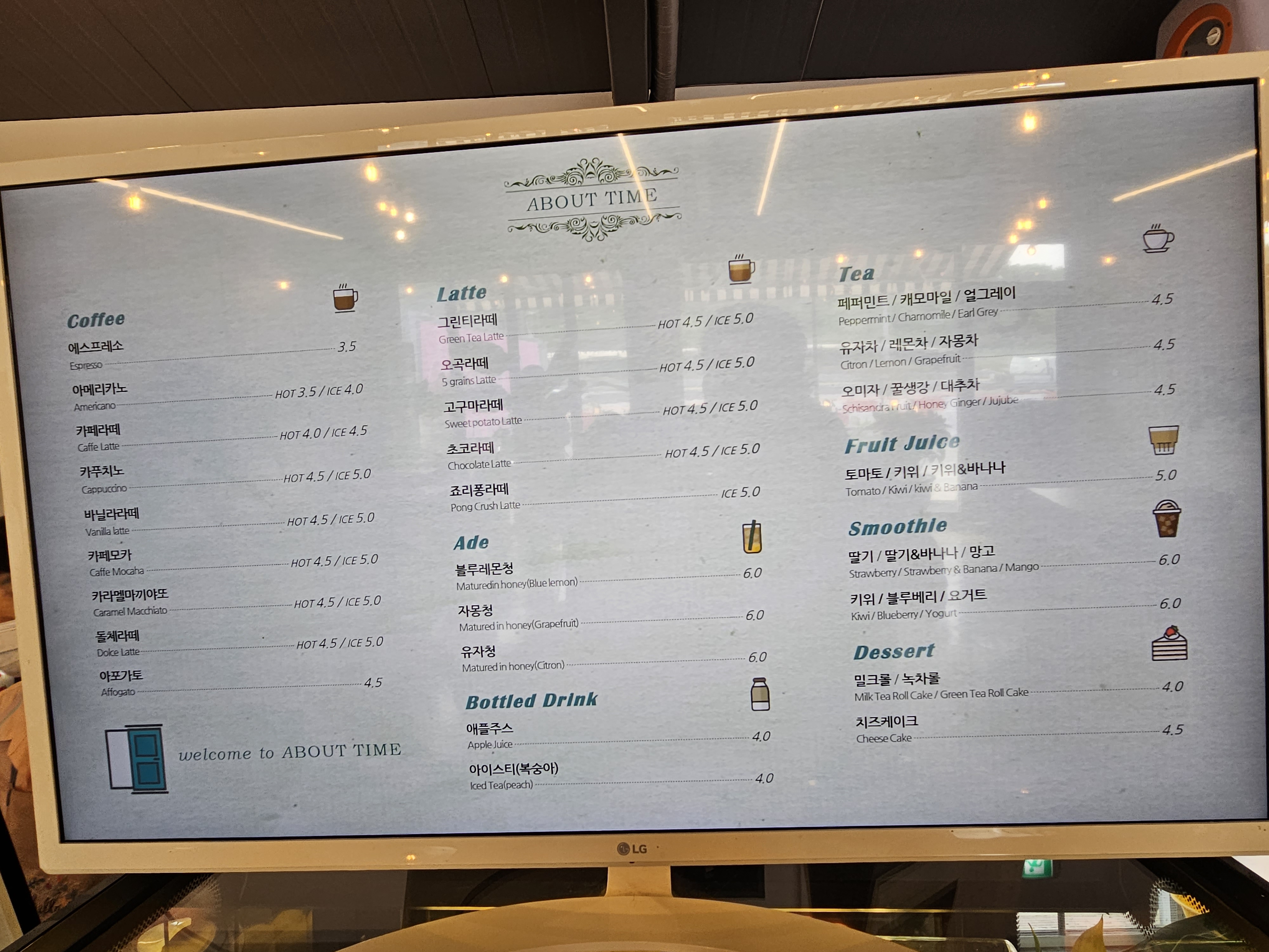 어바웃타임(about Time) 카페 메뉴