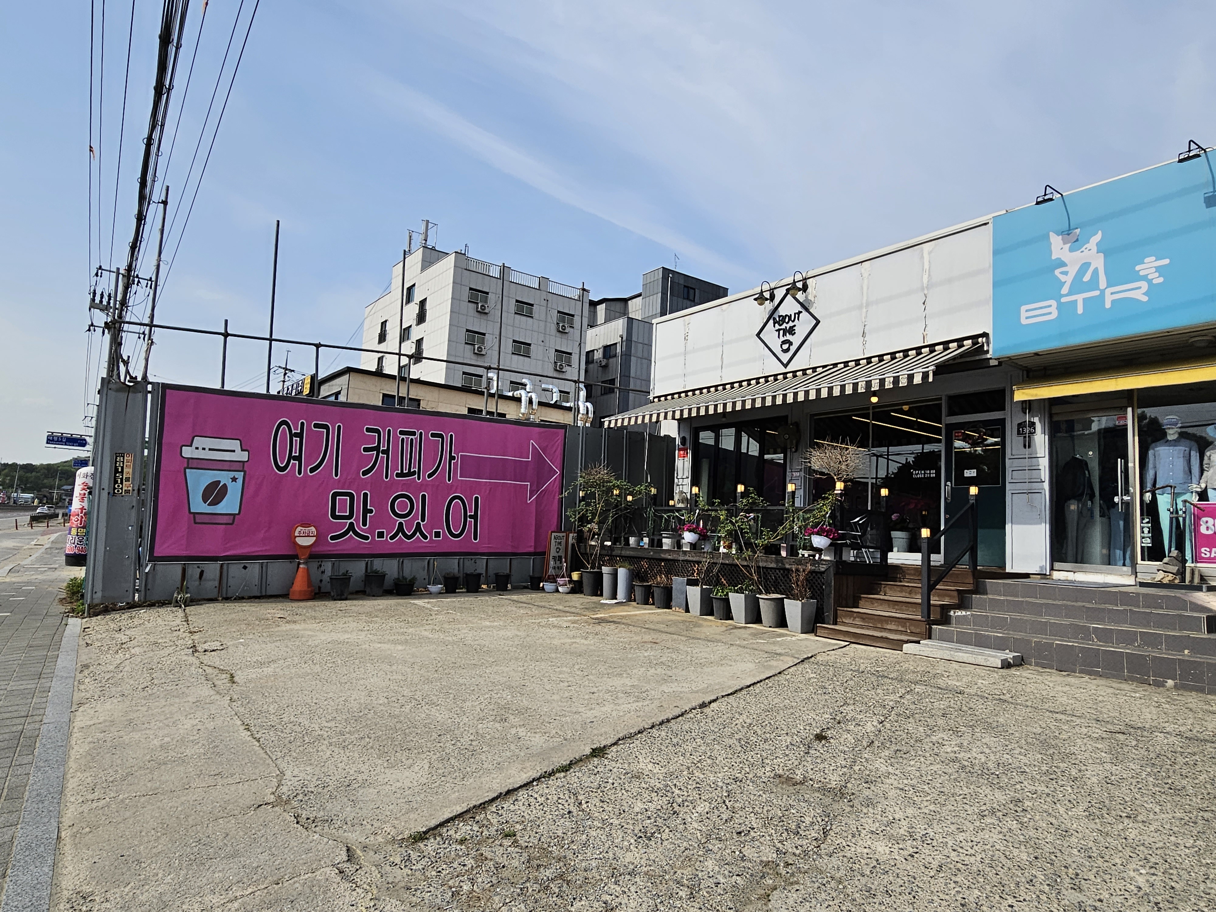 어바웃타임(about Time) 카페 역시 가남읍 경춘대로 변에 자리하고 있는데, 매번 지나가면서 '여기 커피가 맛있어'라고 크게 적힌 현수막을 보고 한 번 들러야겠다고 생각한 곳입니다.