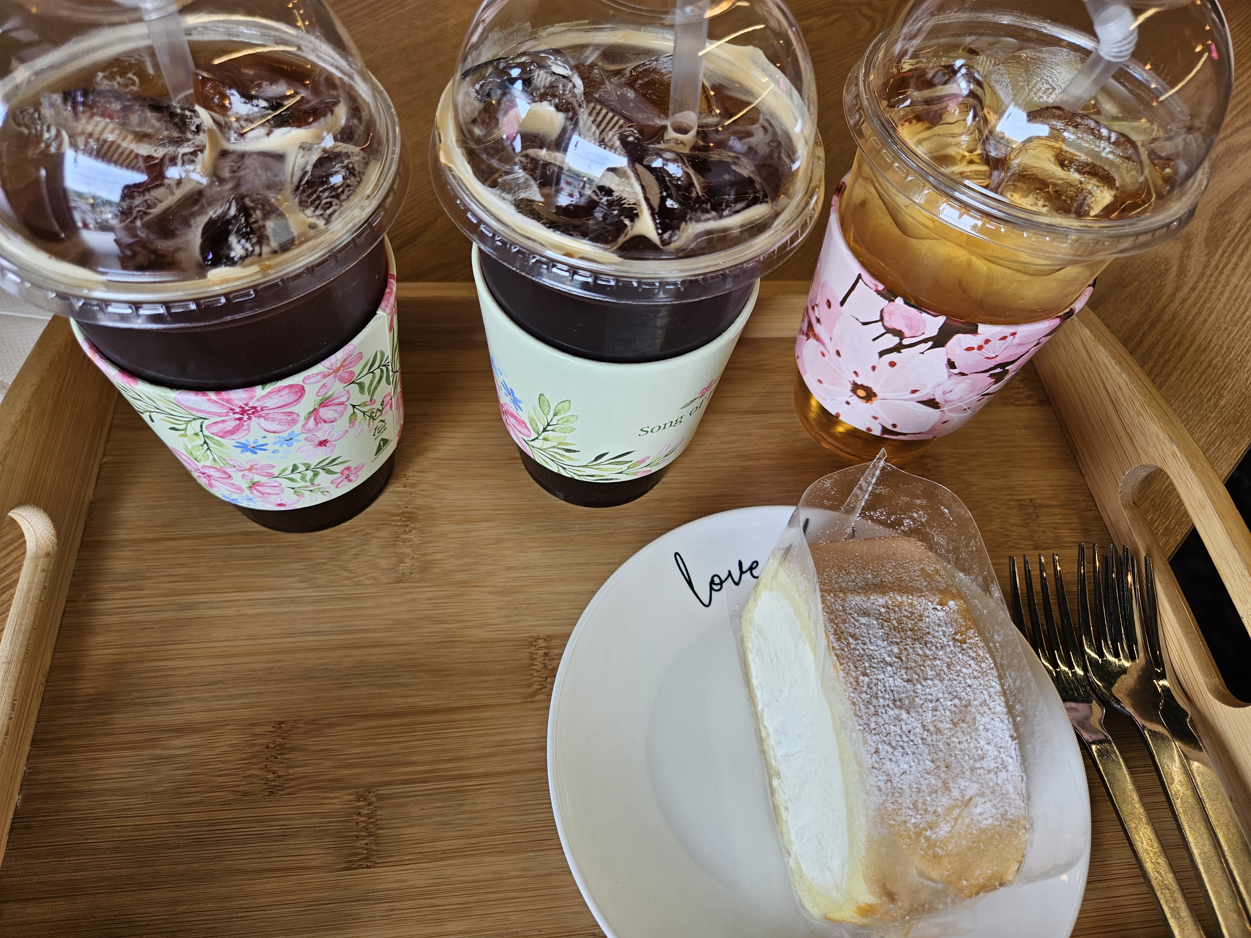 아이스 아메리카노와 애플주스, 그리고 크림빵 하나를 주문했습니다.