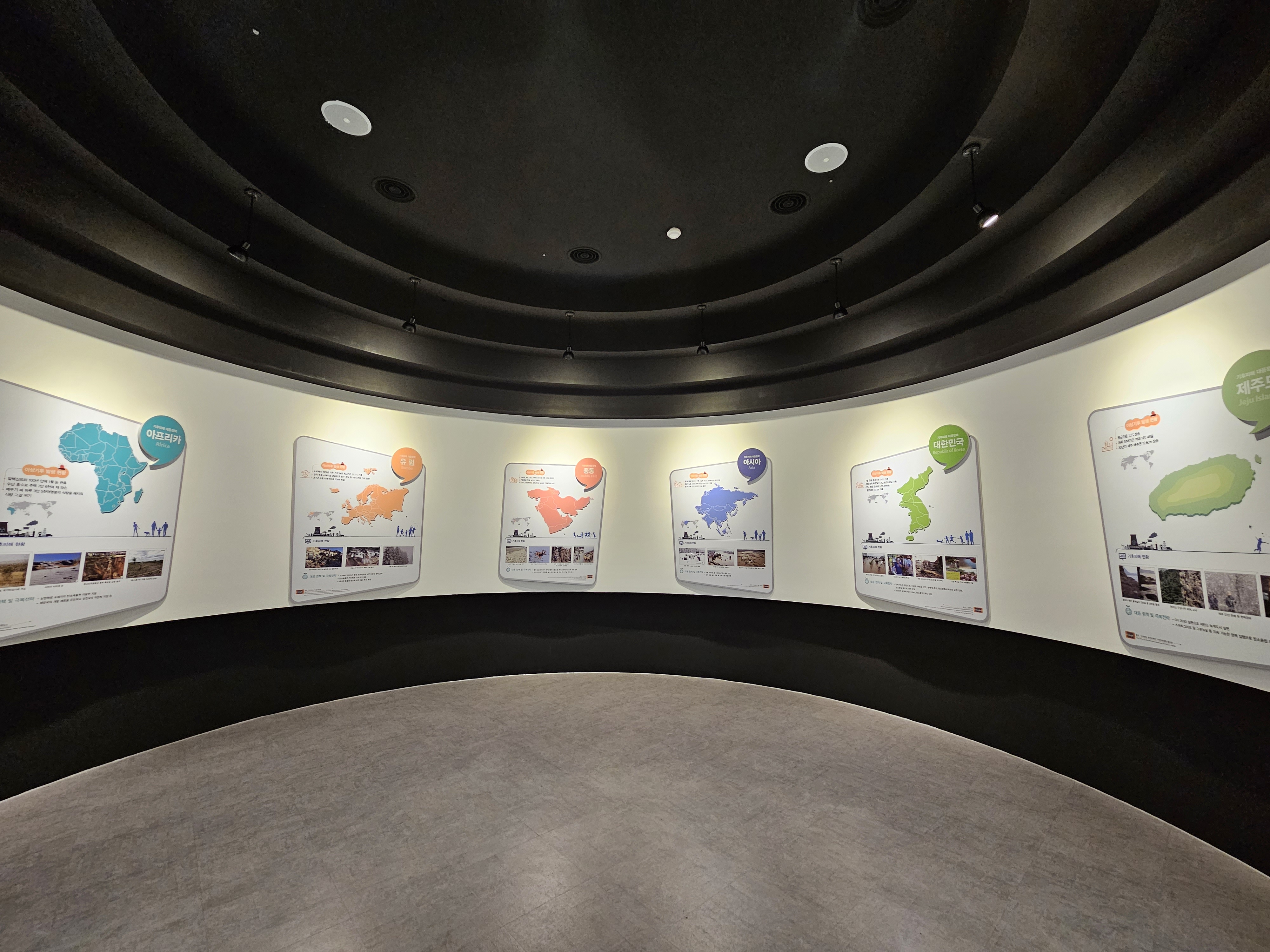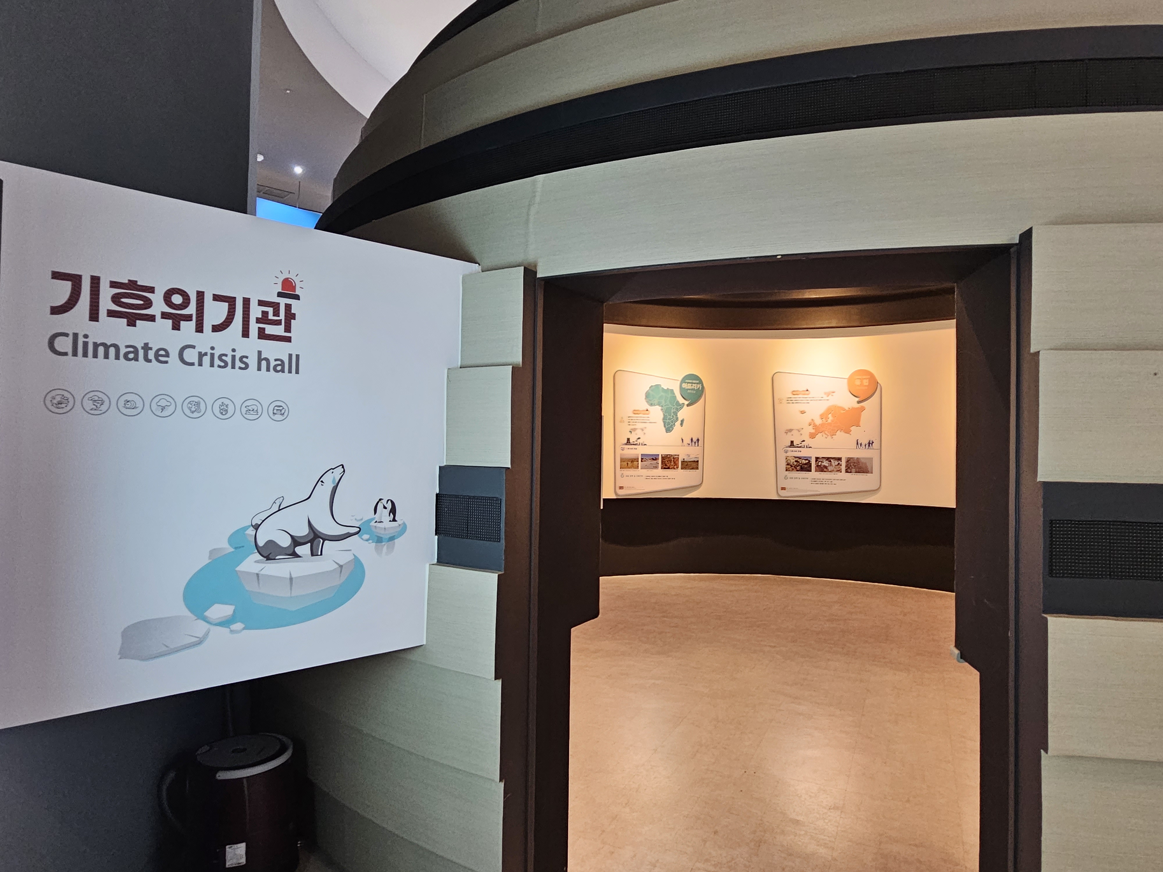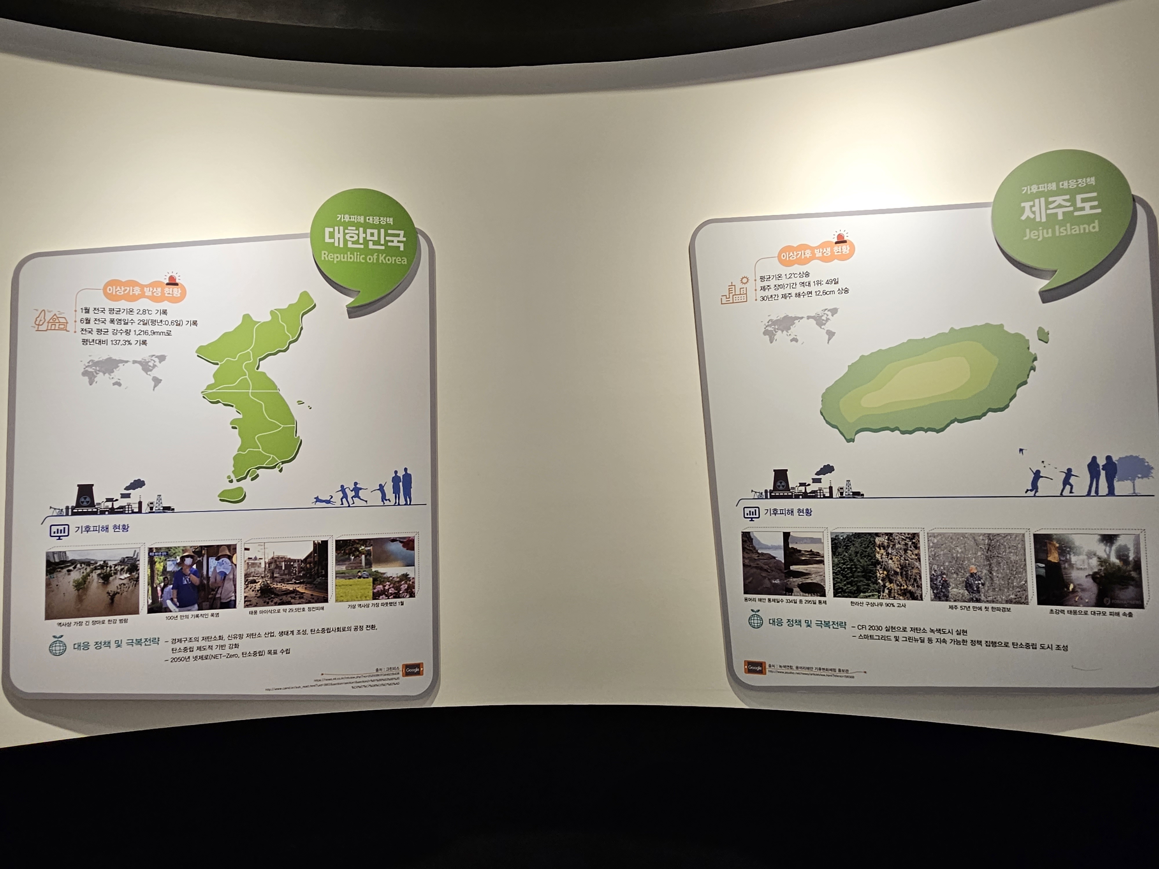 아프리카, 유럽, 중동, 아시아, 대한민국, 제주도의 이상기후 발생 현황 등 기후변화의 심각성을 알 수 있는 전시관입니다.