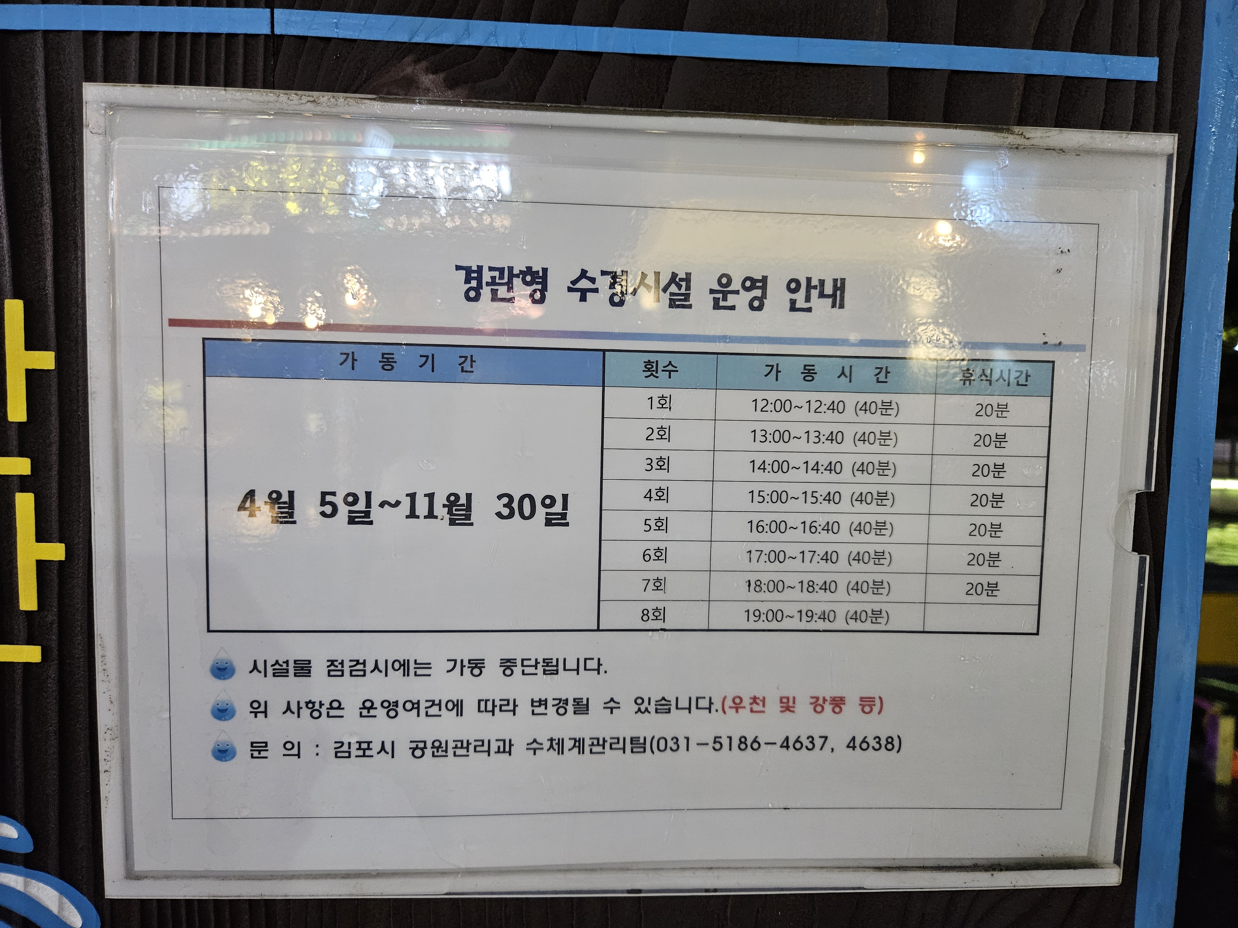 4월 5일부터 11월까지 분수가 가동됩니다.
