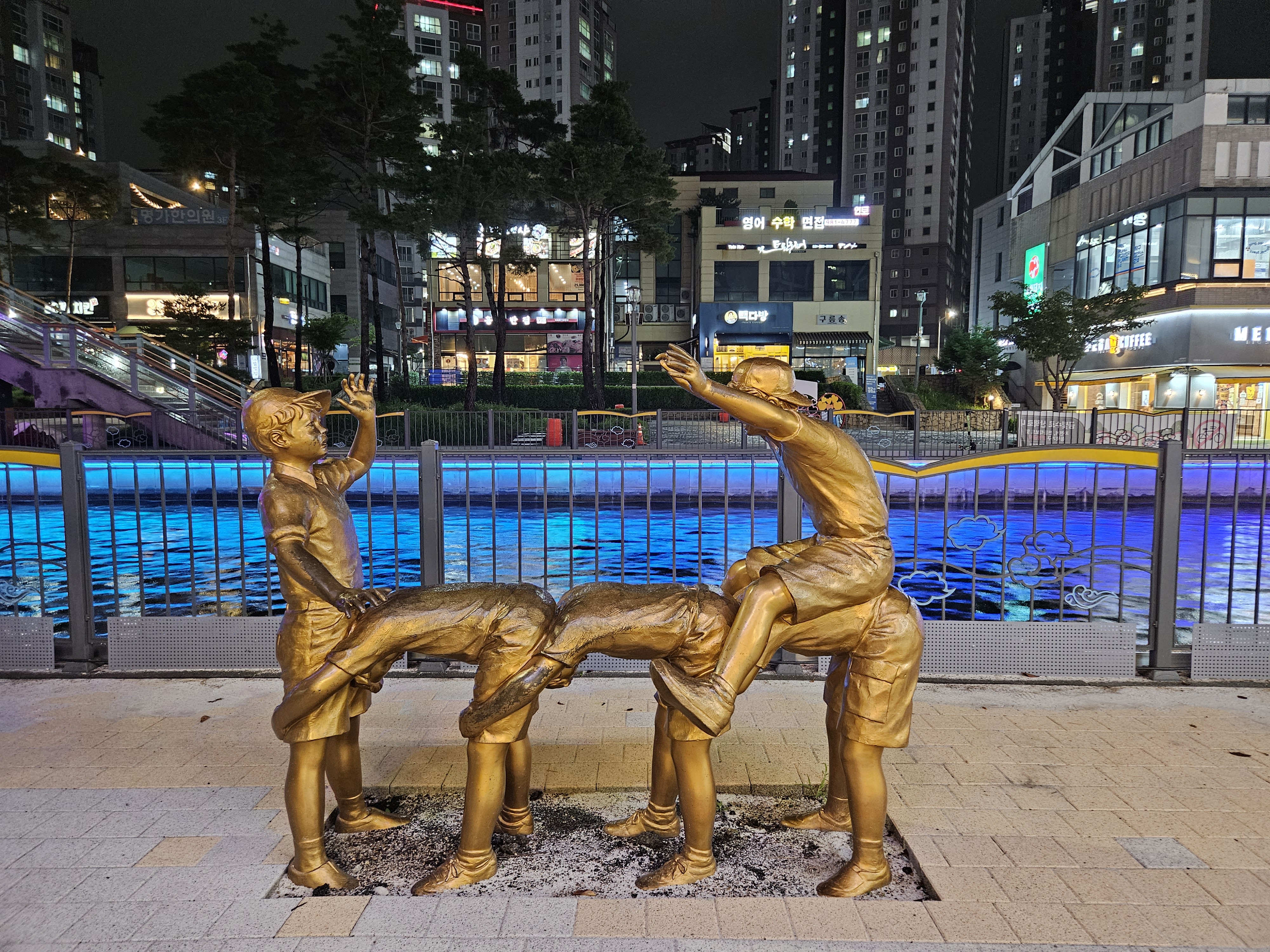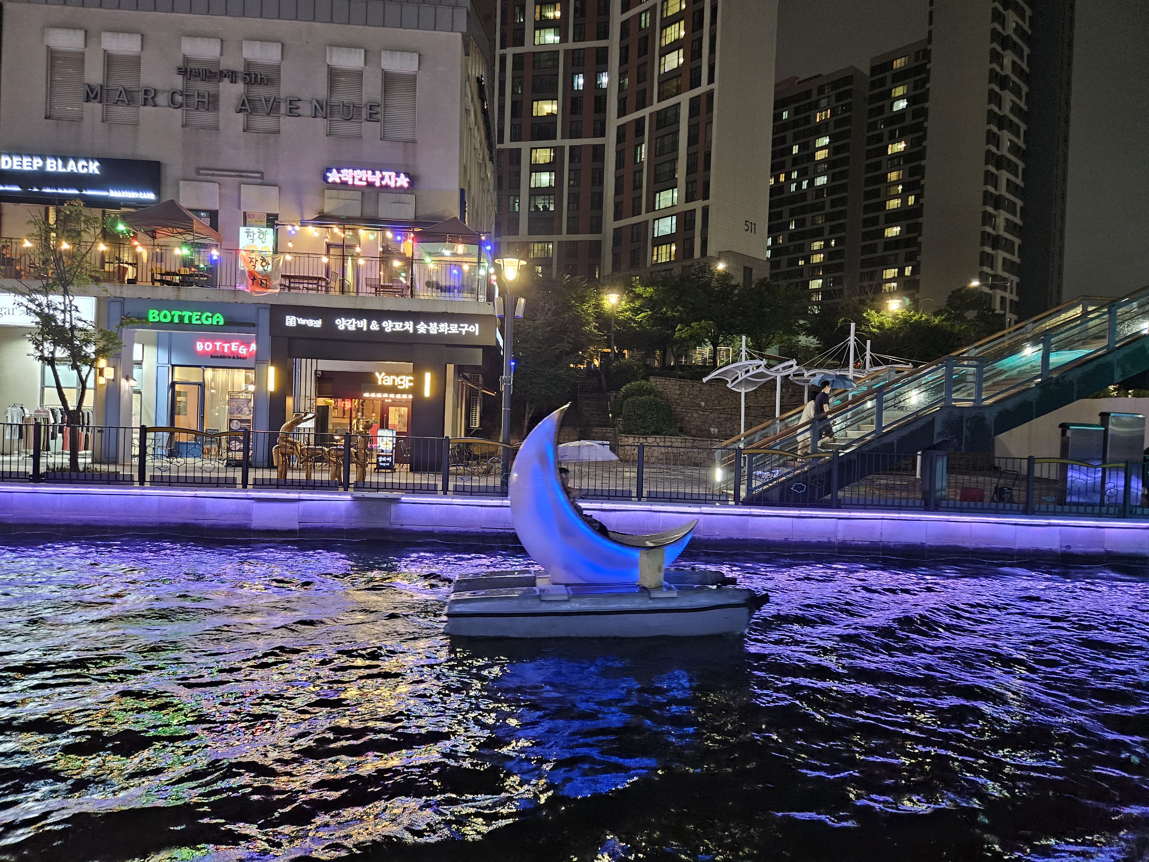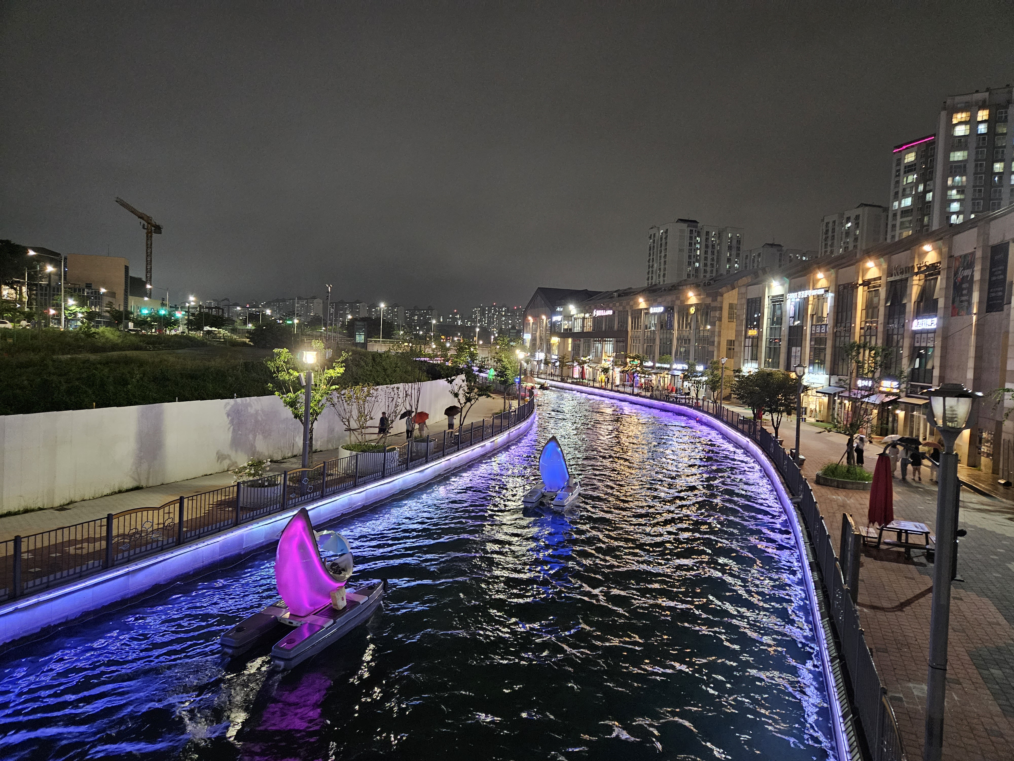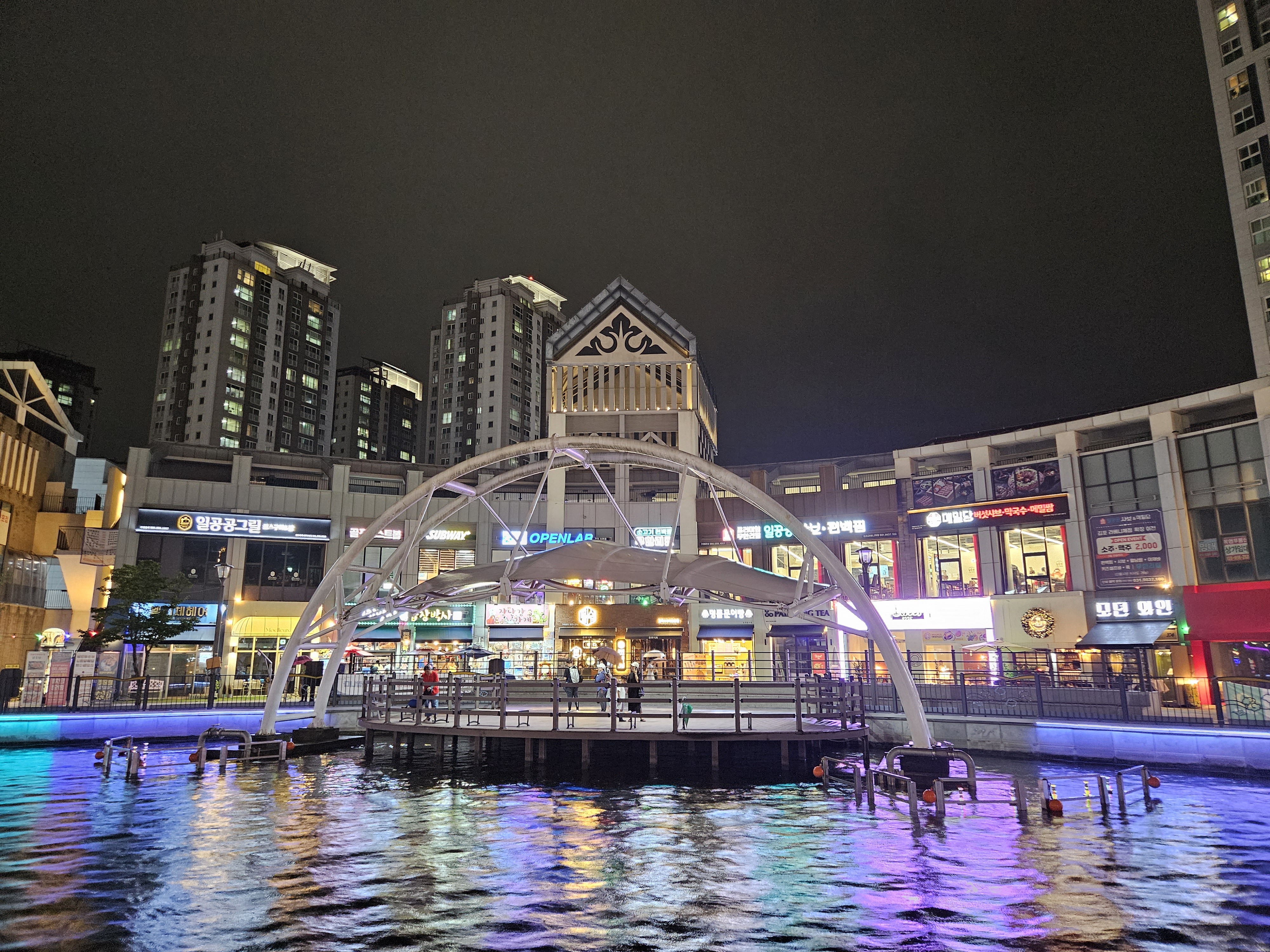 수변산책길인 금빛수로와 라베니체 상가가 어우러진 야경이 매우 이국적인 곳이죠.