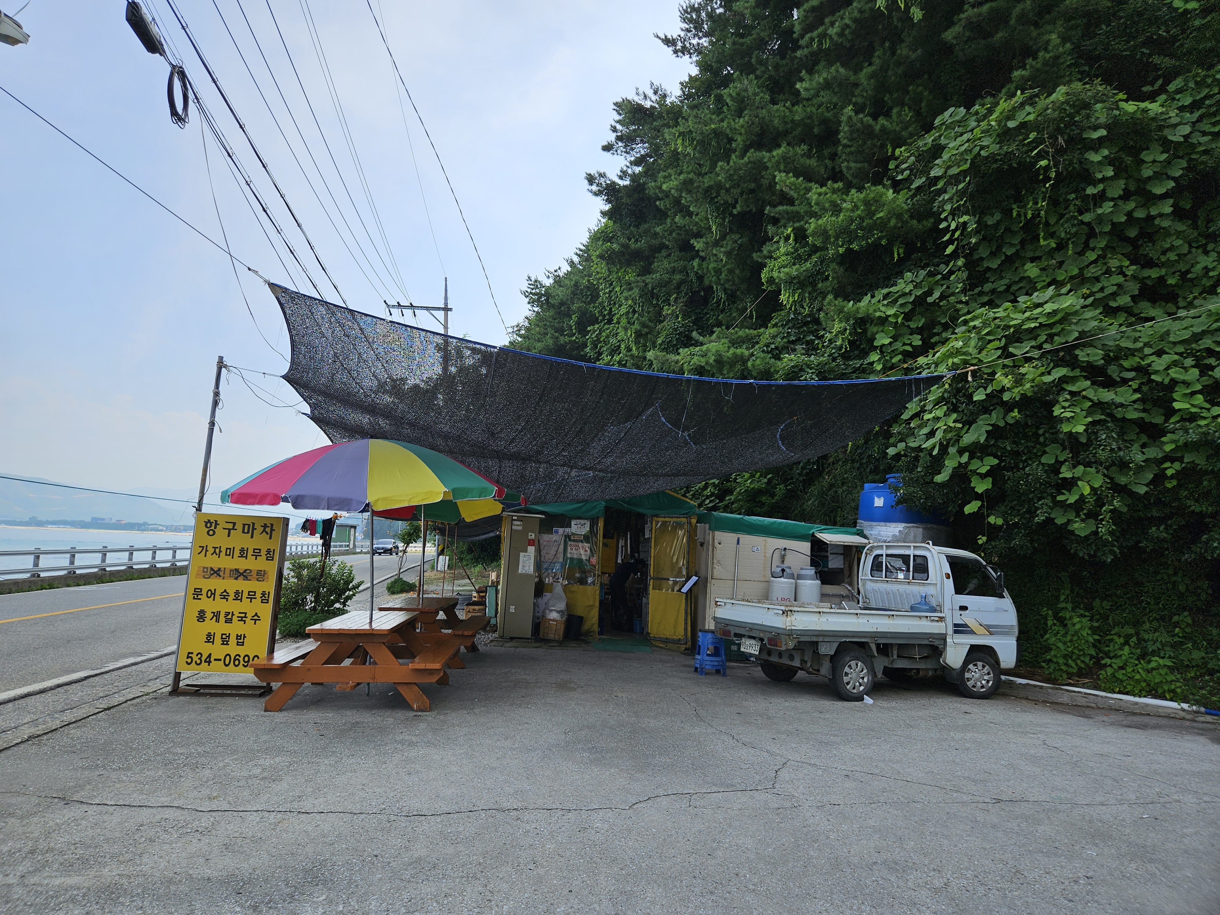 점심을 먹기 위해 금진해변에서 금진항 사이, 헌화로 해안에 자리한 항구마차에 갔습니다.