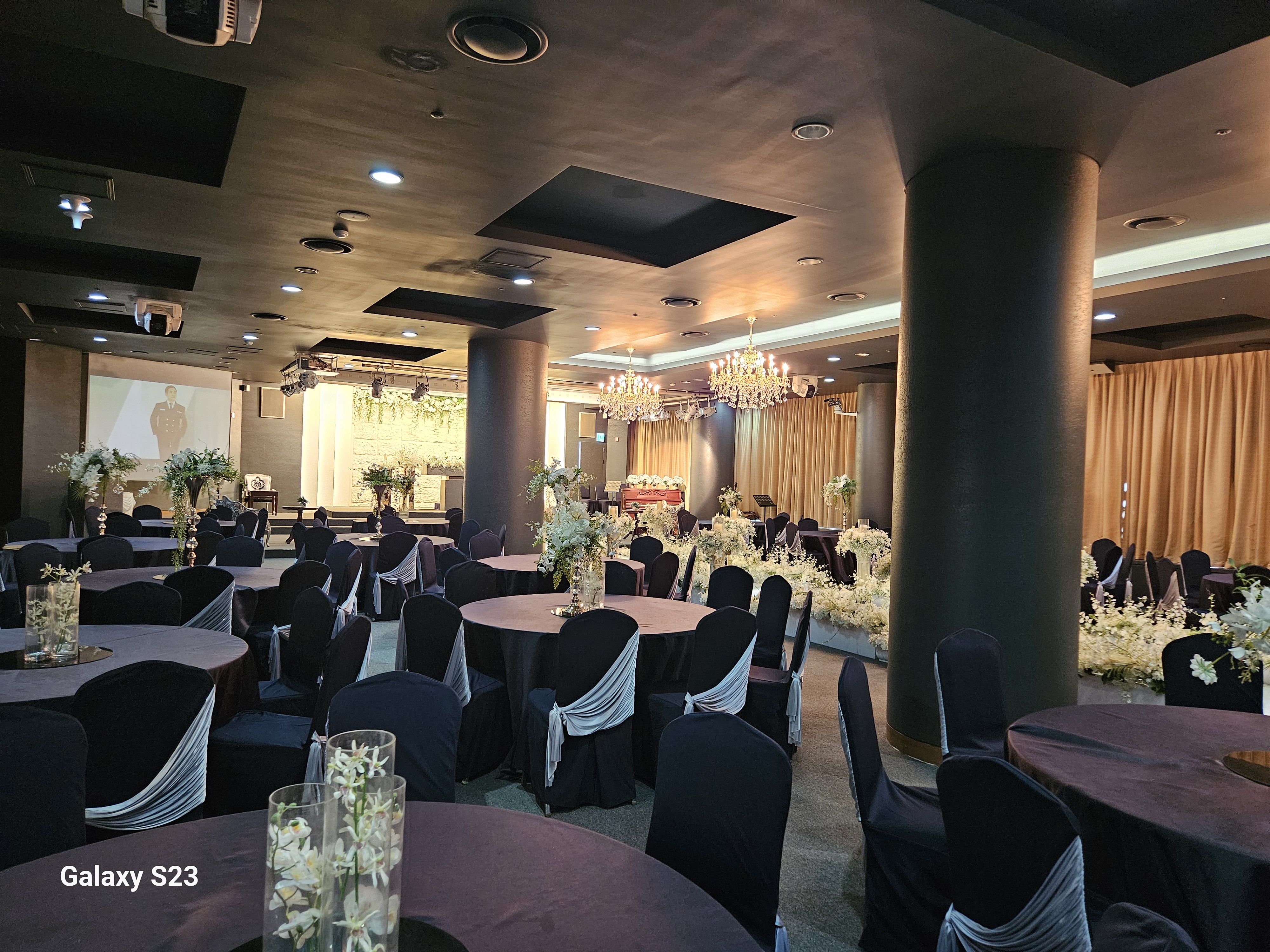 지하엔 주차장이, 2층엔 그랜드볼룸, 3층엔 웨딩홀, 5~6층은 연회홀과 웨딩홀 등이 있고요.