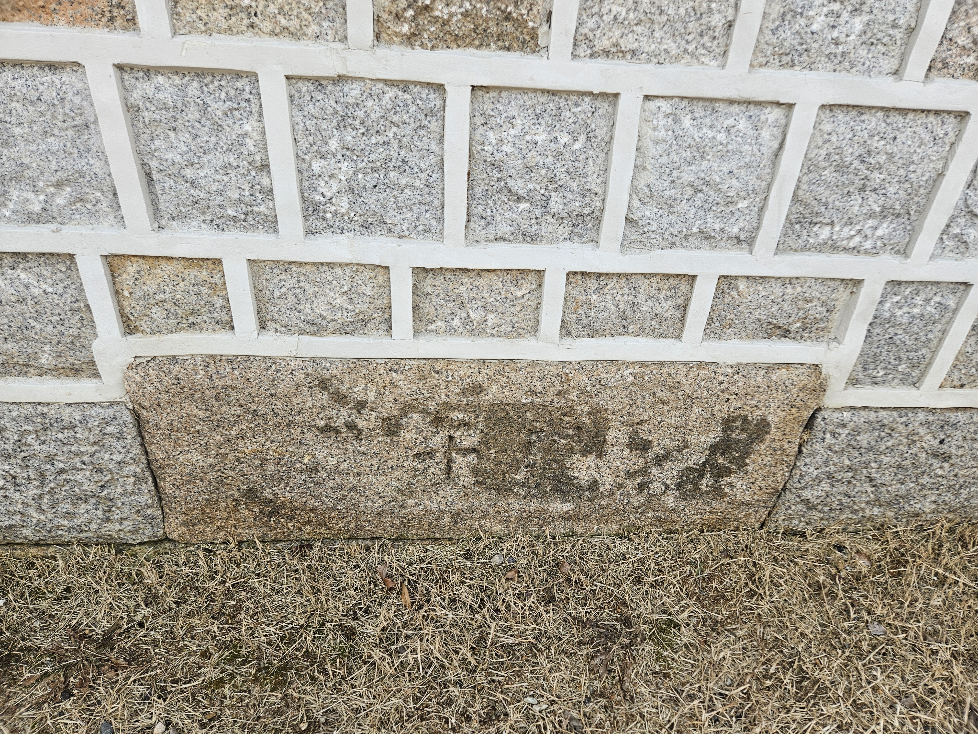 종묘 담장을 수리하면서 조선시대의 규례에 따라 간지를 새겨 개축연도를 표시한 돌입니다.