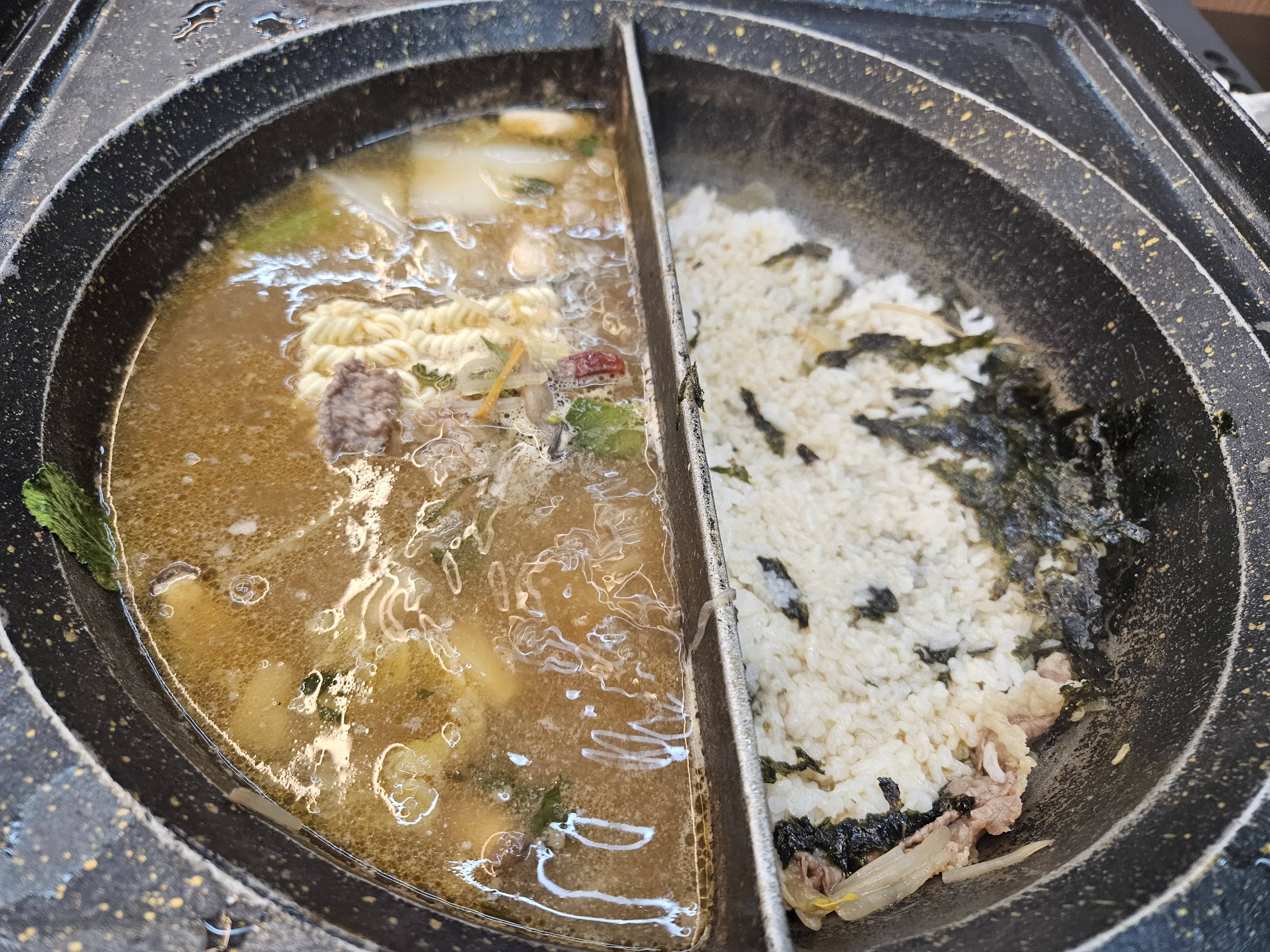 송산그린시티점에 비해서 목동사거리점은 소고기는 적은데 비해 버섯과 만두가 들어간 점이 차이입니다.