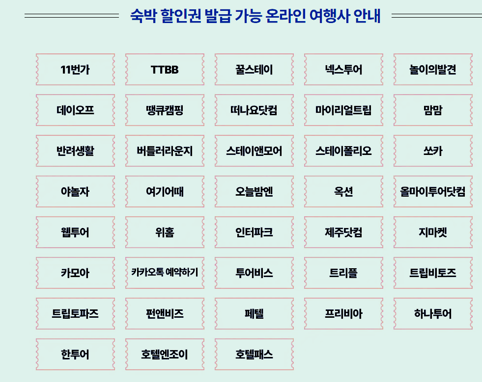 숙박 할인권은 온라인 여행사 38곳에서 발행합니다.