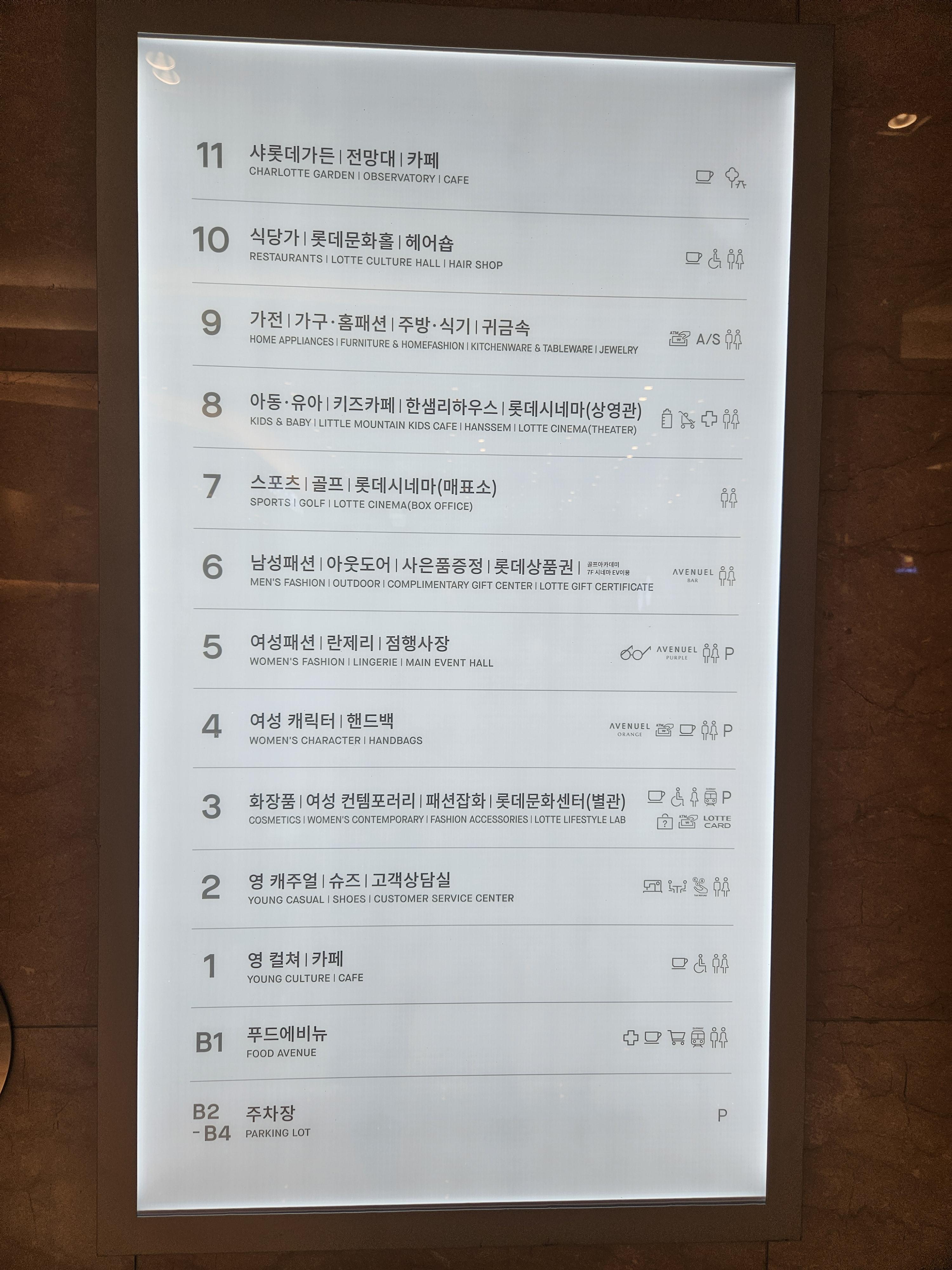 11층엔 샤롯데가든과 전망대, 카페가 있습니다.
